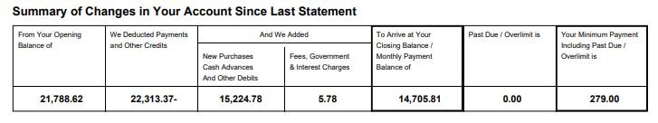 Minimum repayment for the month was $279.00